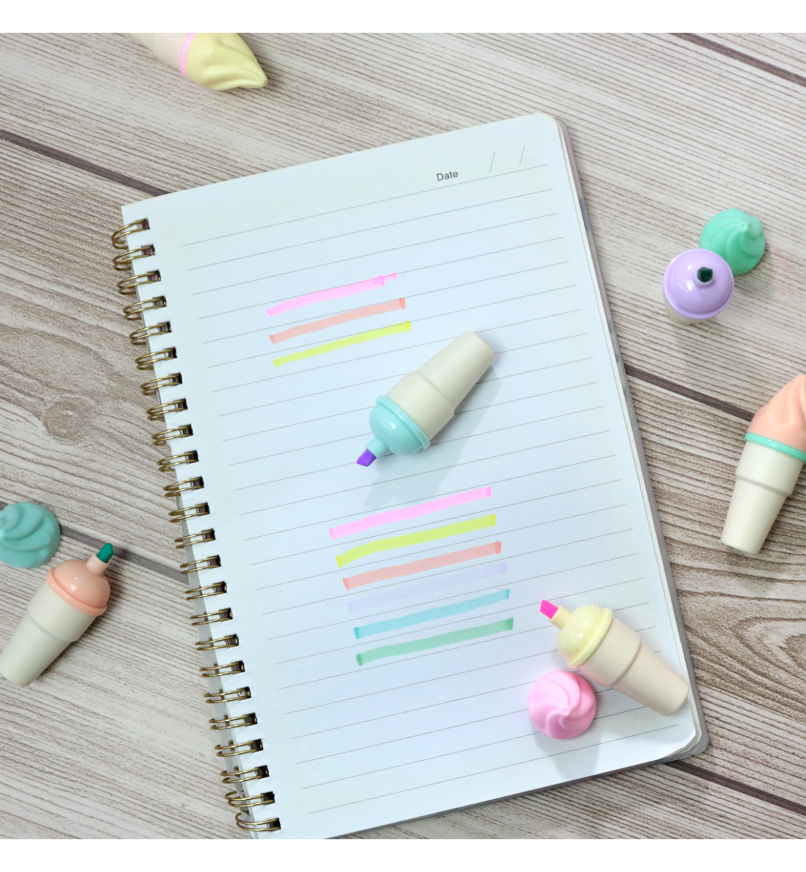 Marca texto com formato de sorvete na casquinha irá deixar os estudos mais leves, doces e refrescantes. São 6 cores: Amarelo, Rosa, Azul, Lilás, Verde e Laranja. Cores suaves com pigmentação ideal para marcar o que precisar. Acompanha estojo transparente.
