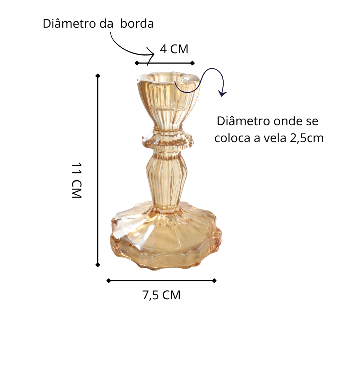 CASTIÇAL DE VIDRO AMBAR ELOYSA 4X7,5X11CM - GA10022