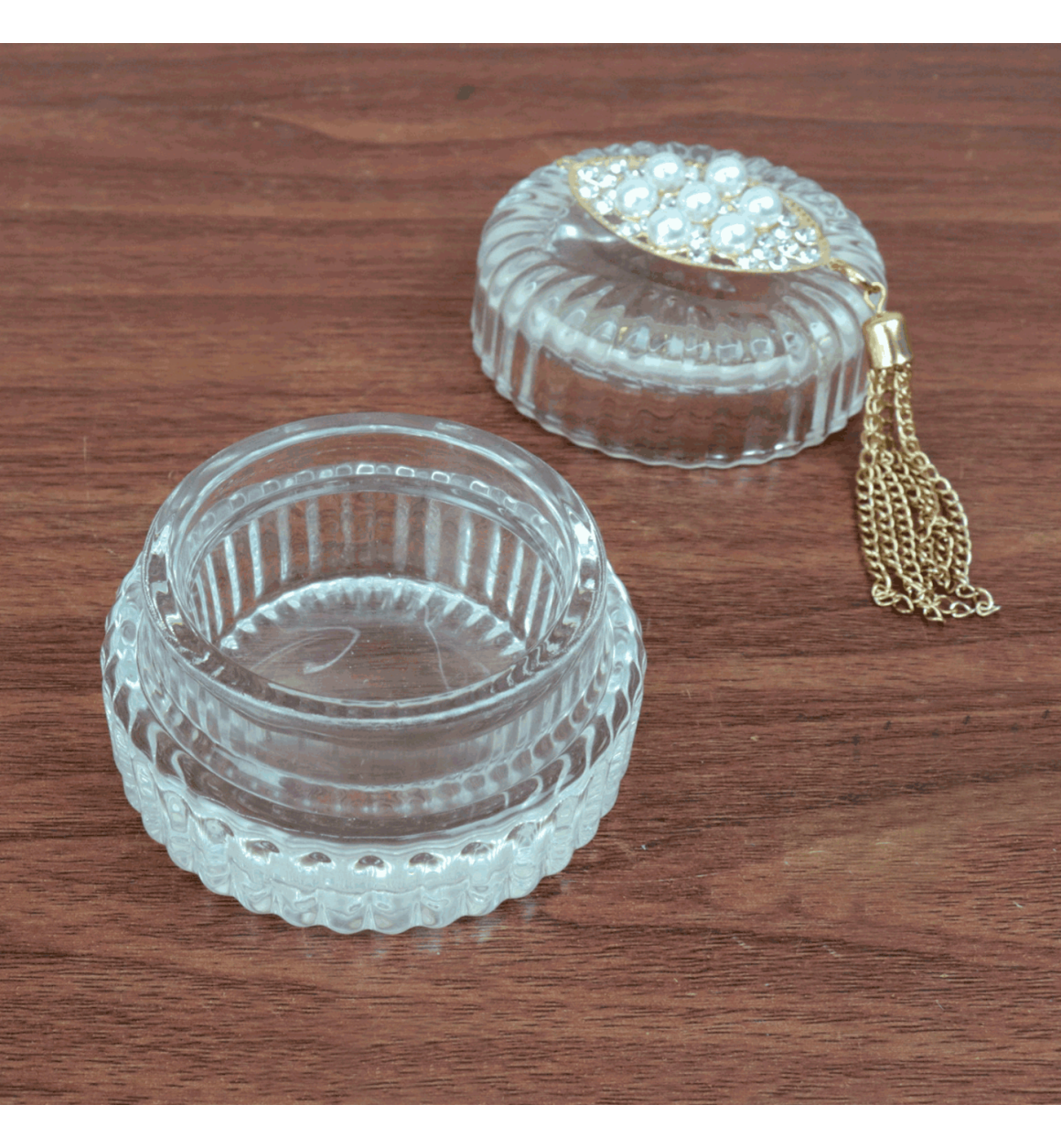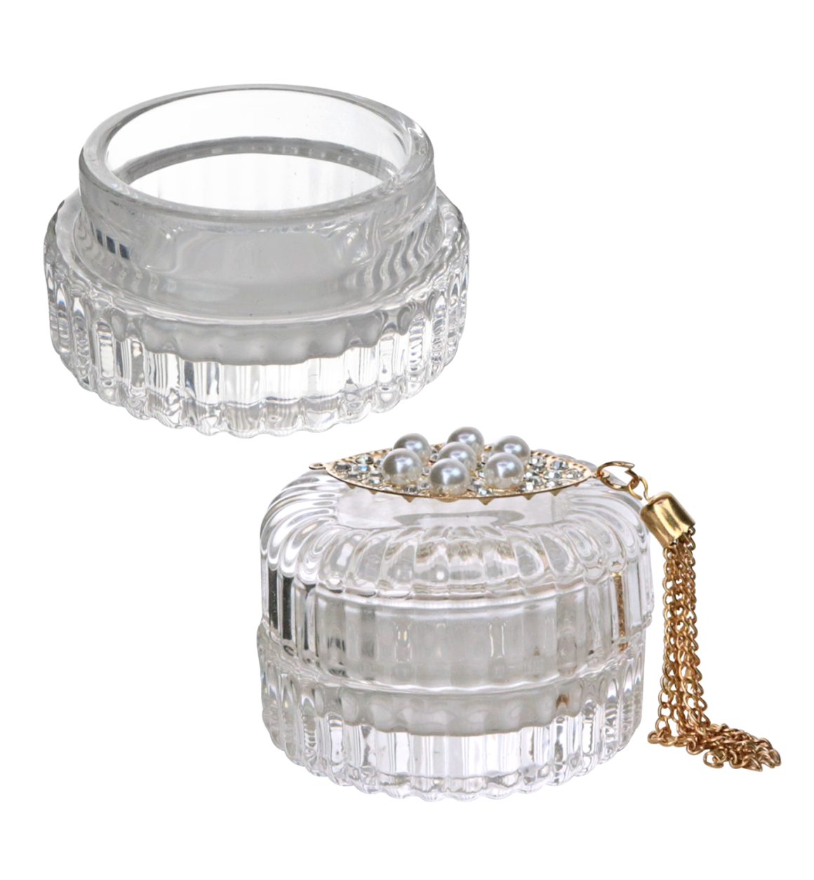 CASTIÇAL EM VIDRO COM TAMPA E PENDENTE 4,8CM - GA10045-C