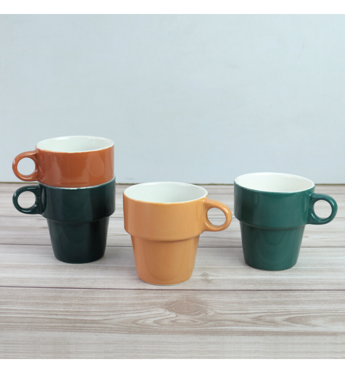 CONJUNTO 4 XICARAS PORCELANA COLORIDAS COM SUPORTE 200ML - 1046