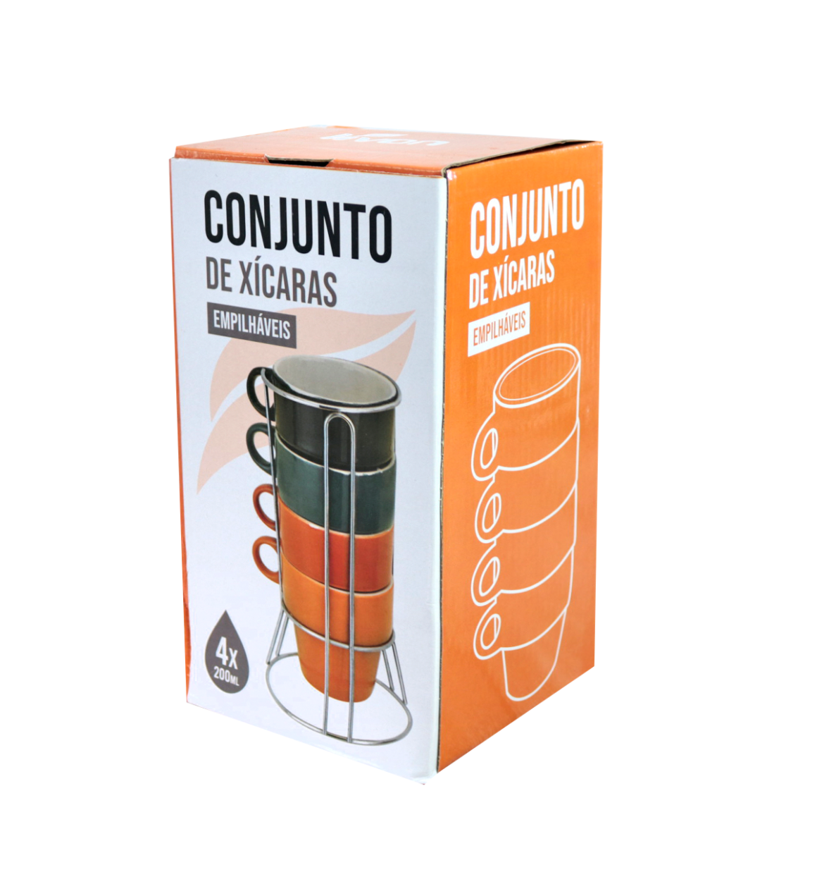 Capacidade de cada xícara: 200ml.