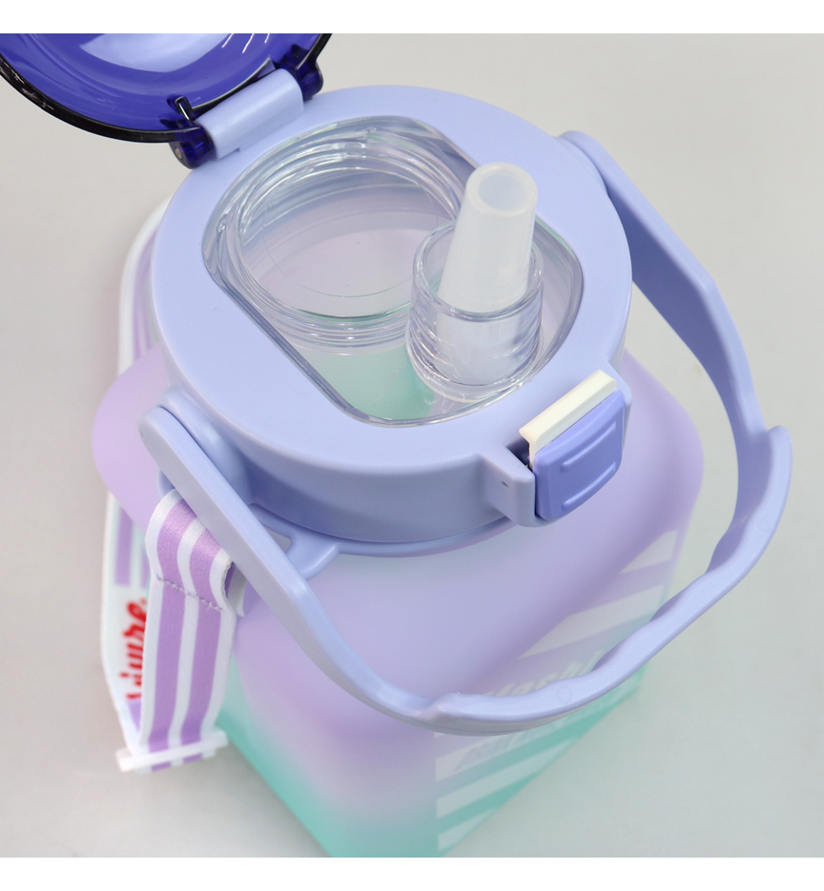 GARRAFA DE PLÁSTICO QUADRADA COM CANUDO E ALÇA TIE DYE 1,5LITROS - 4171-LL.