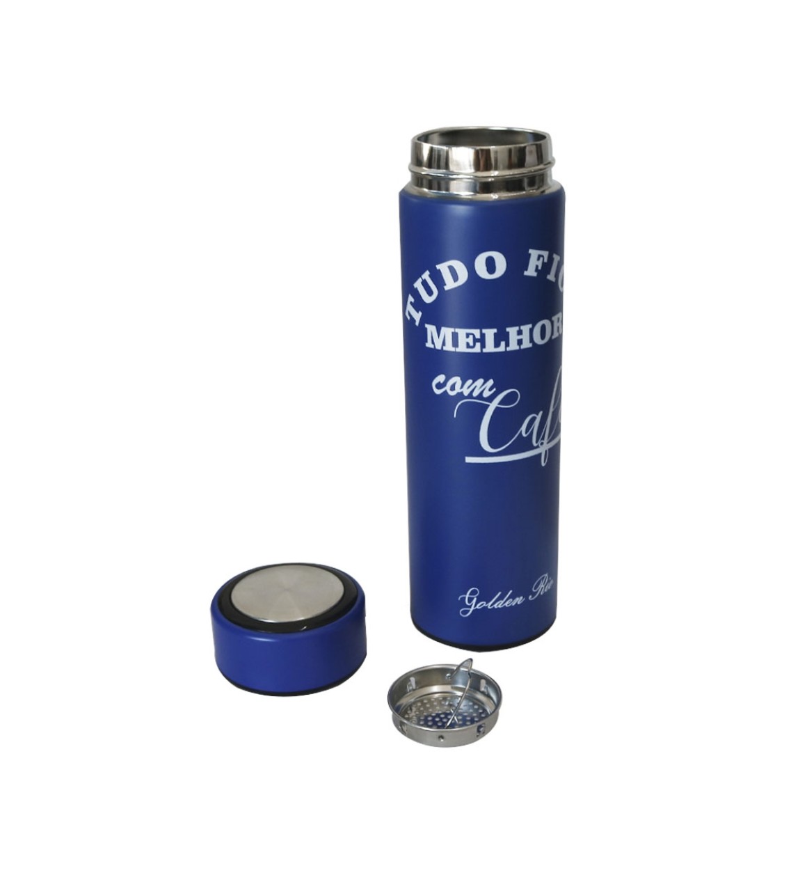 A garrafa isotérmica de inox com infusor possui uma tampa com fechamento por rosqueamento que impede vazamentos e derramamentos de líquidos. Além disso, incluem um infusor na parte interna que possibilita fazer chá e outras bebidas.