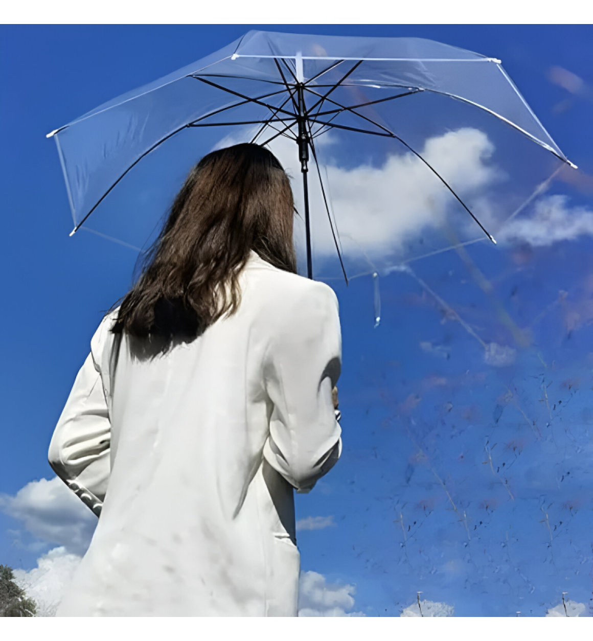 Charmoso e funcional, este guarda-chuva transparente combina estilo e proteção em dias chuvosos. Com diâmetro de 1,12 metros, oferece ampla cobertura para manter você seco mesmo sob chuva intensa. Seu material transparente permite melhor visibilidade ao caminhar, além de dar um toque moderno e discreto ao visual. Possui estrutura resistente, abertura manual suave e cabo ergonômico para maior conforto no uso diário. Ideal para quem busca praticidade sem abrir mão do estilo.