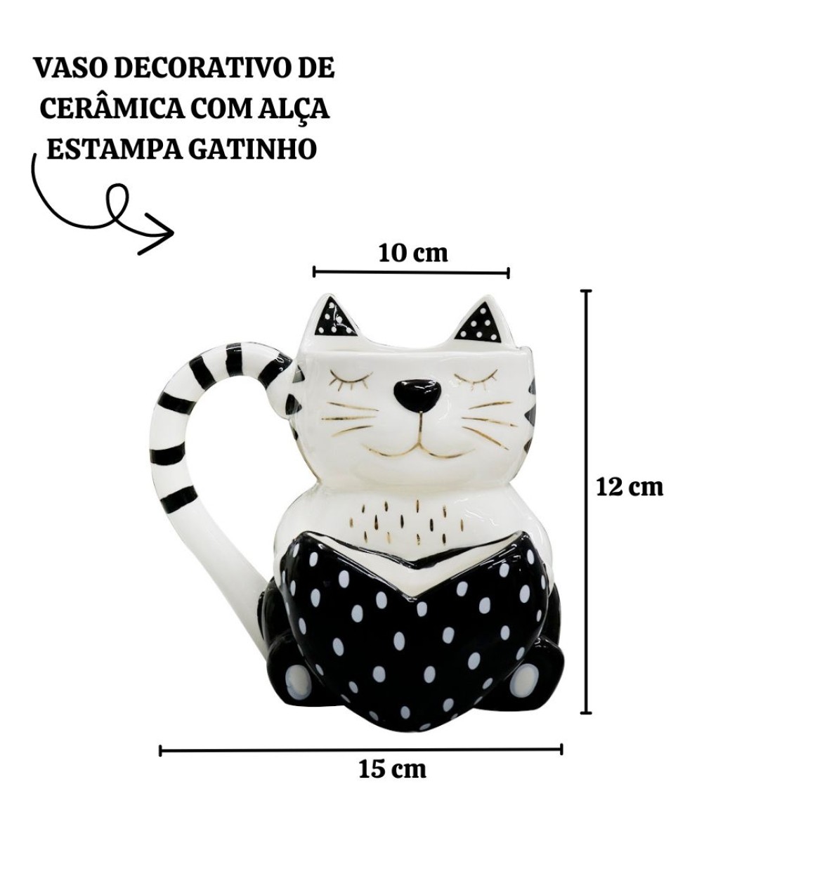 O vaso de cerâmica além de enfeitar o seu ambiente você poderá apenas utiliza-lo como uma peça para decoração de ambientes. A Estampa é bem delicada de gatinho, nele você poderá colocar tanto plantas artificiais como naturais de pequeno porte.